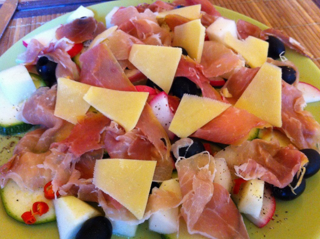 Én egy Serrano sonkás zöldségtálat ettem kemény sajttal:
